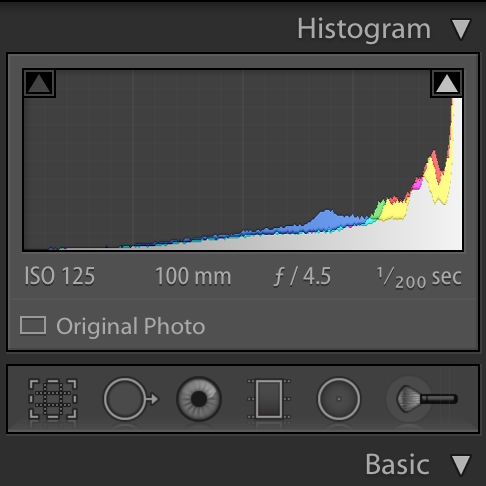 All of the areas in red are where the “blown out” whites are. These are the areas in the image that would not have any ink when printed.